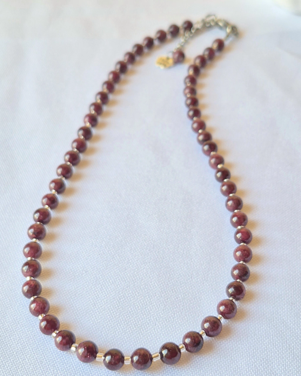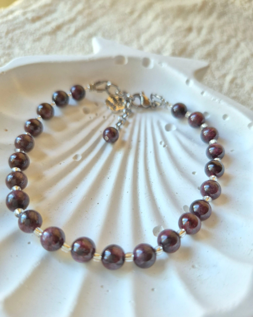 Pulsera de cuentas de 6 mm de Granate cierre y extensión de cadena de acero para un ajuste cómodo y seguro.