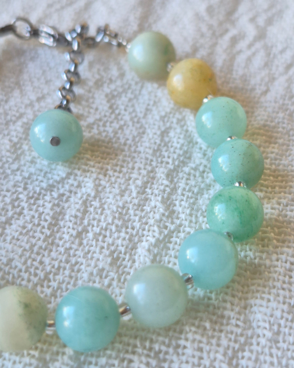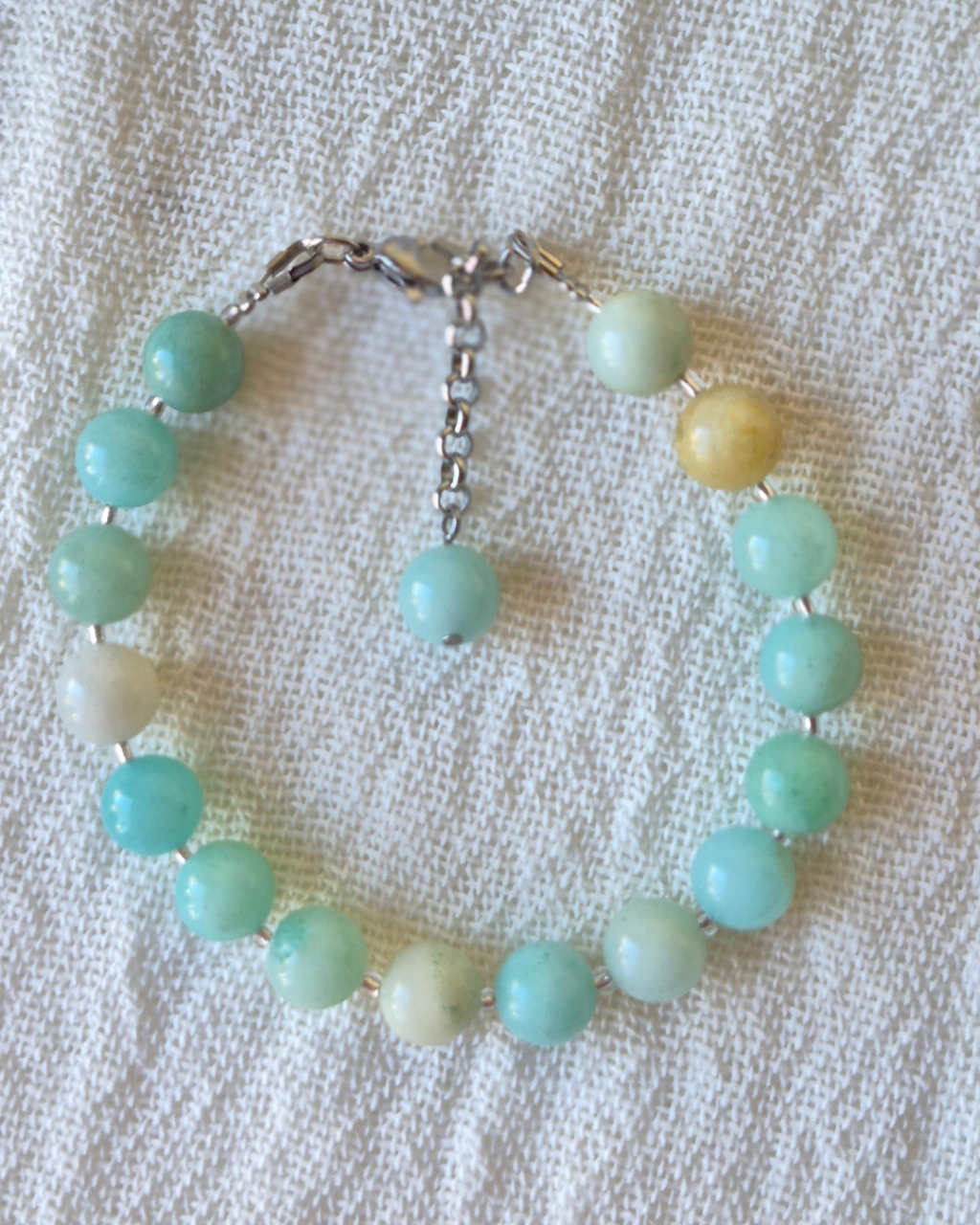 Pulsera de cuentas de Amazonita natural de 8 mm, armada con cierre y cadena de extensión de acero quirúrgico (3 cm).