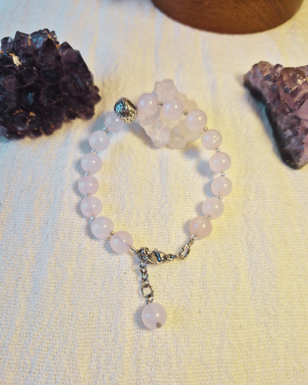 Importante: El color y la transparencia de las piedras pueden variar, ya que trabajamos con materiales 100 % naturales. Cada pulsera es única, reflejando la delicadeza propia de lo auténtico.