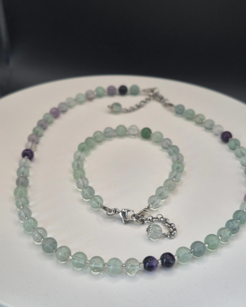 La fluorita arcoíris reúne vetas verdes, violetas, azuladas y transparentes que favorecen la claridad mental, el orden interno y la limpieza energética. Ayuda a estructurar ideas, enfocar la atención y suavizar el estrés. Sintoniza principalmente Ajna (6º chakra); los tonos verdes acompañan Anahata (4º) y los matices azulados, Vishuddha (5º).